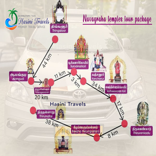 Embark on a divine 2-day Navagraha temple tour starting from Coimbatore. This spiritual journey covers the sacred temples dedicated to the nine planetary deities, offering blessings and peace of mind.
